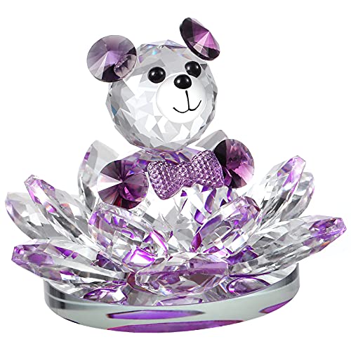 クリス&ジェムズ ハンドメイド クリスタル ベア & フラワー フィギュア コレクション バレンタインデー(パープル)