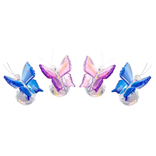 クリス&ジェムズ 4個セット クリスタルフライングバタフライ クリスタルボールベースフィギュア スタチュー ペーパーウェイト (2ブルー2パープル)
