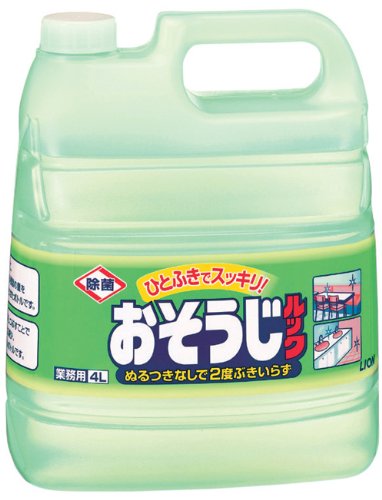 「業務用 おそうじルック 4L」は、ぬるつきナシで2度拭きいらず、客室や厨房内のテーブル・椅子・床だけでなく、キッチンまわりの軽い汚れにも使える住居用洗剤です。