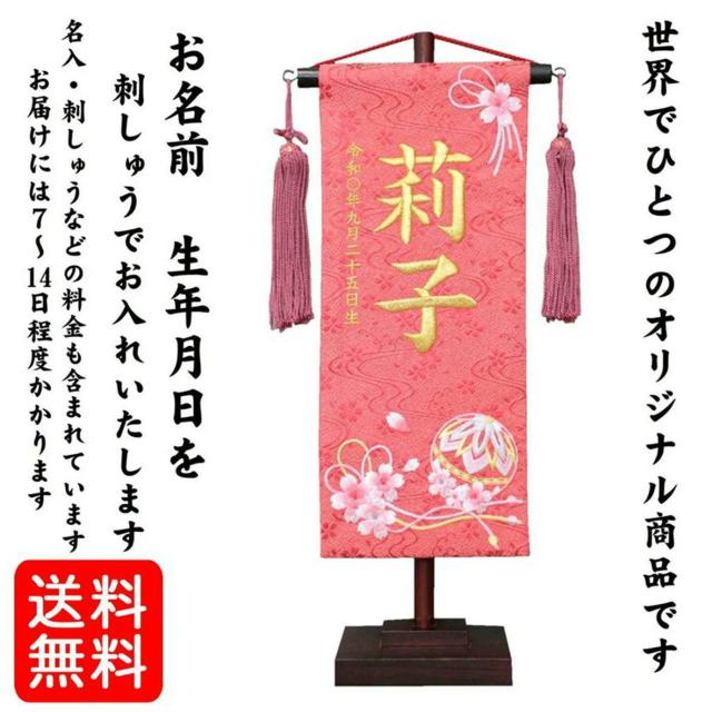 名前旗 なまえ旗 女の子 【 総刺繍 】 名入れ旗 【 桜まり 朱色 金文字 200751 】 小 刺繍仕立て名前旗飾り ちょうどいいサイズ 小サイズ 土台付 雛 旗 初節句 おしゃれ かわいい 可愛い 人気 節句祝い 節句飾り名前 生年月日入代すべて込