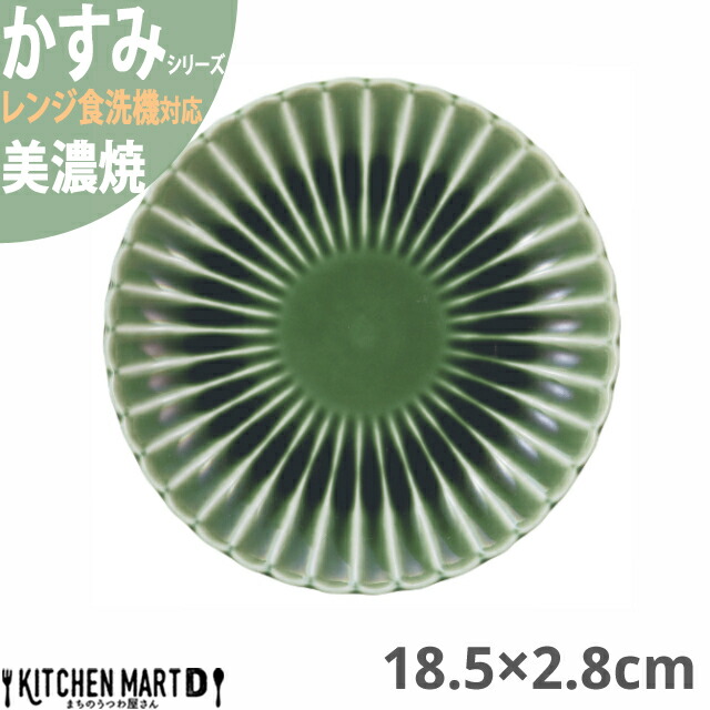 かすみ 緑 18.5×2.8cm 丸皿 プレート 美濃焼 約310g 日本製 和食器 織部 グリーン 丸 丸い 皿 食器 取り皿 サラダ パン皿 朝食 おしゃれ 陶器 しのぎ 鎬 光洋陶器 レンジ対応 食洗器対応 ラッピング不可