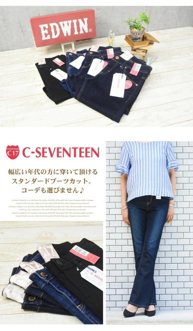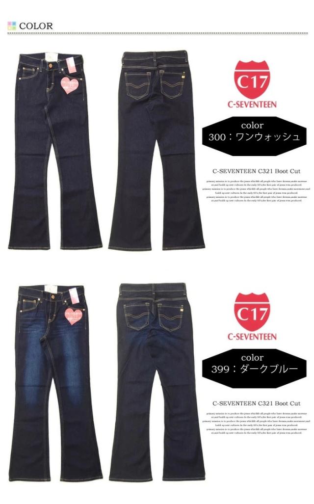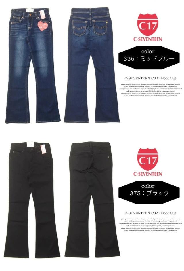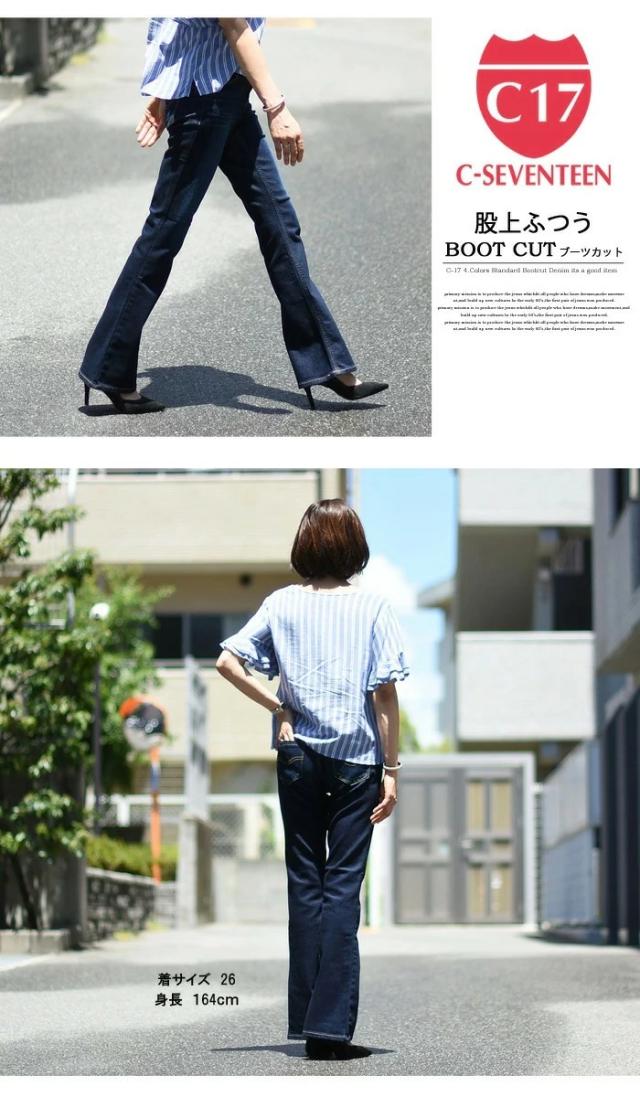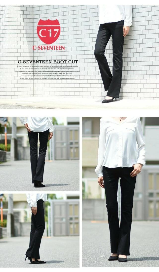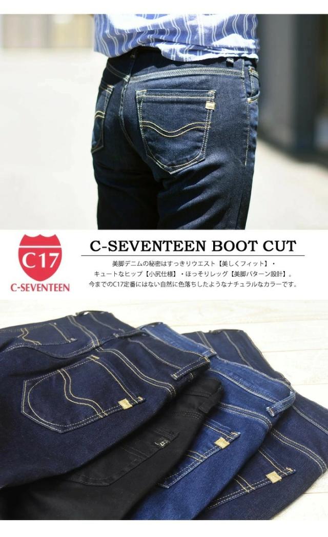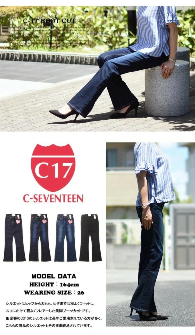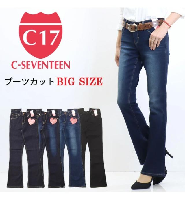 大きいサイズ C17 C-SEVENTEEN レディース ブーツカット デニム ジーンズ ストレッチ パンツ フレアー シーセブンティーン C-17 送料無料 CR421