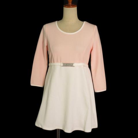 【中古】セシルマクビー CECIL McBEE ワンピース チュニック バイカラー ビジュー 七分袖 M ピンク 白 レディース