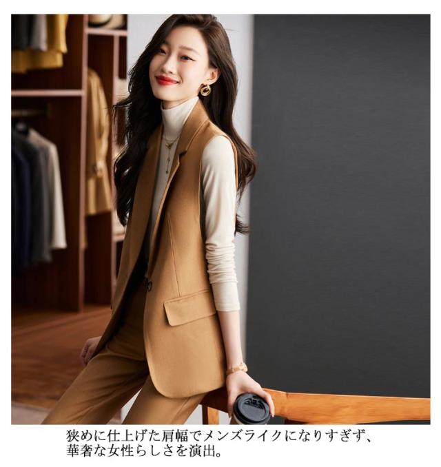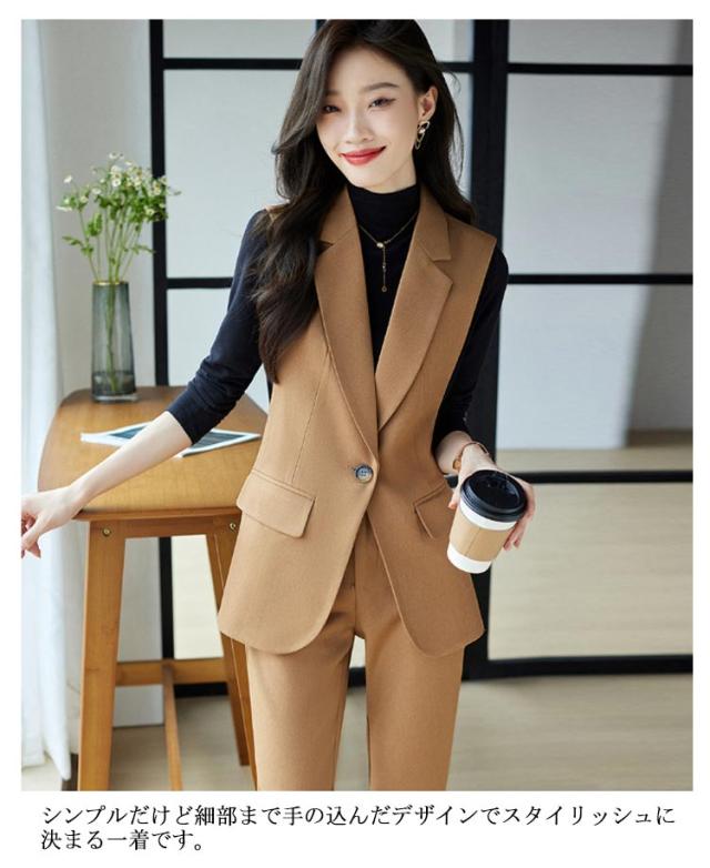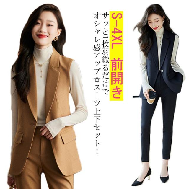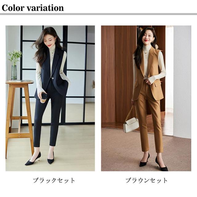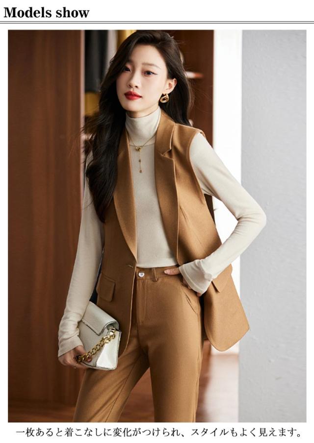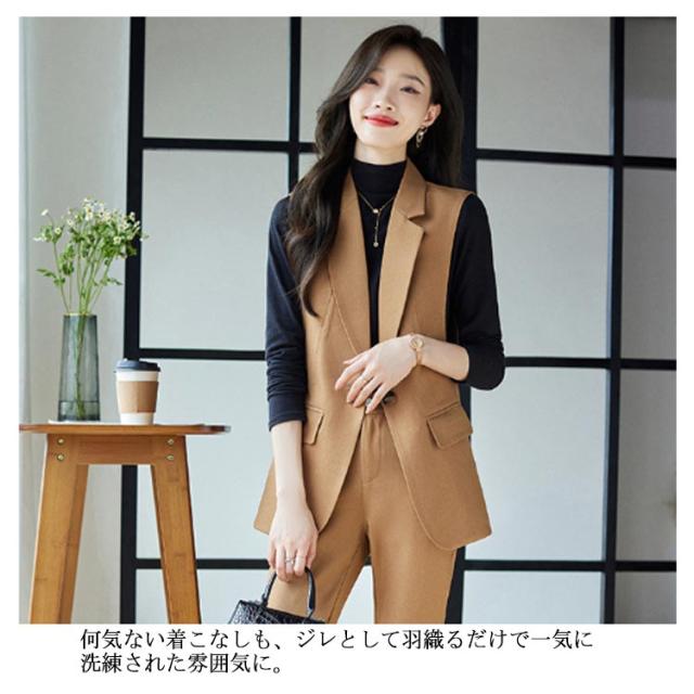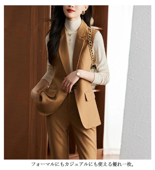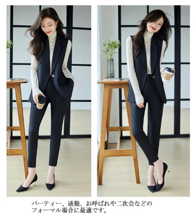 ジレ OL 細身 スーツベスト テーラードベスト ビジネス 2点上下セット フォーマルベスト ベスト ロングパンツ 通勤OL スラックス 仕事 サラリーマン 前開き ジレベスト チョッキ 無地 通勤 きれいめ ジレコーデ オフィス 大人 レディース