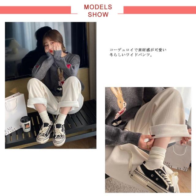 | 人気のワイドパンツに裏起毛付き登場! 裏起毛付きor裏起毛無し選べる2タイプ コーデュロイで素材感が可愛い冬らしいワイドパンツ。 ストンと落ちるシルエットと縦ラインで脚長効果抜群! ウエストゴムで楽ちん着心地。 ワンマイルウェアとしても活躍するワイドパンツは1枚持っていると困らないアイテムです。 | |