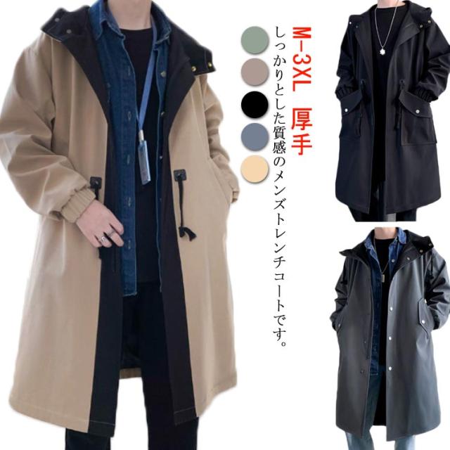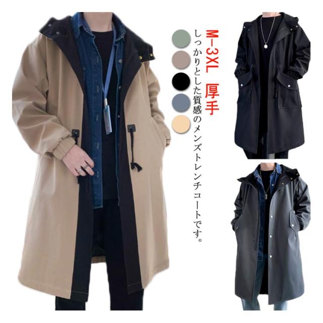 トレンチコート 紳士服 中綿入り メンズ ロングコート 大きいサイズ ビジネスコート ピーコート ミディアム丈 スプリングコート 冬服 ダッフルコート マウンテンパーカー カジュアル フード付き チェスターコート Pコート コットン メルトン 通勤 通学 厚手