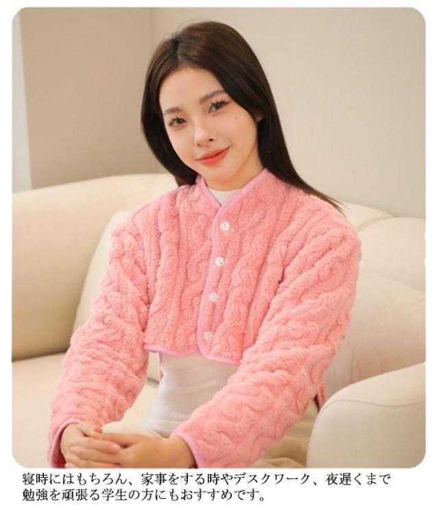 | 冷えやすい肩先から首元を暖かく包み込むもこもこ肩当てです。 軽量ながら暖かいフリース素材が着心地バツグン! 長袖デザインがどんなに寝相が悪くてもめくり上がらないから、朝まであったか! パジャマの上から着て、方をすっぽり包むので、寝返りを妨げません。 妊婦産婦、お年寄り、ご両親へのプレゼントとしても大変喜ばれるでしょう。 寝時にはもちろん、家事をする時やデスクワーク、夜遅くまで勉強を頑張る学生の方にもおすすめです。 | |