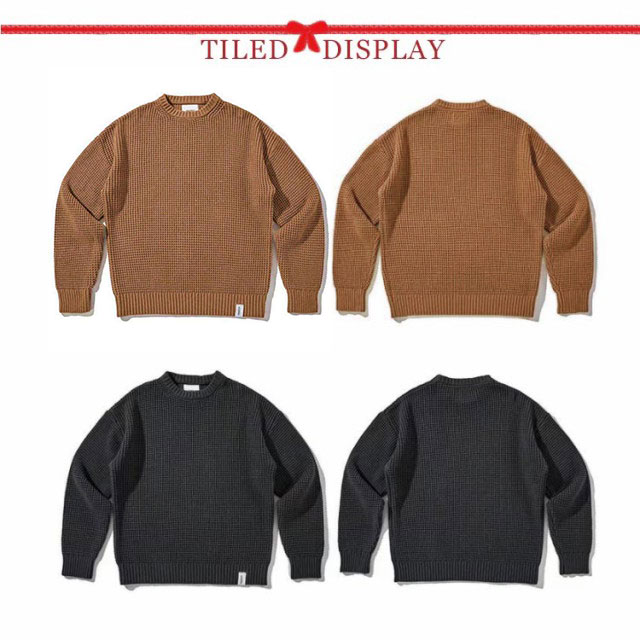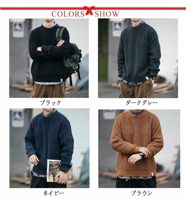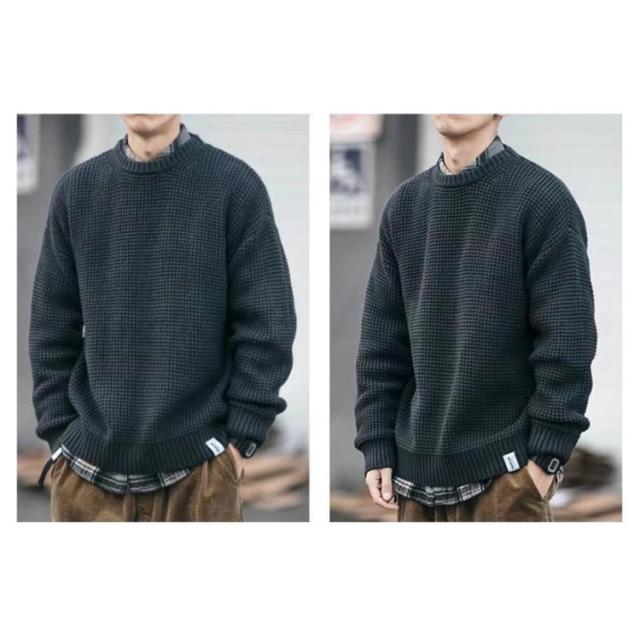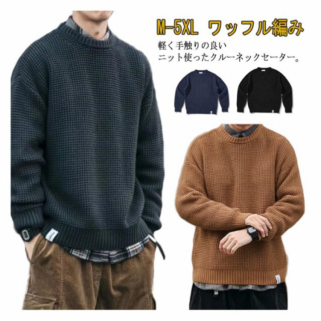 | M-5XL!軽く手触りの良いニット使ったクルーネックセーター。 程よくゆとりを持たせたサイジングで、リラックス感のあるシルエットを作り出しています。 ドロップショルダーがさりげなく抜け感も演出してくれます。 もっちり柔らかな肌触りで、着心地が良く、寒い冬も体を暖かくしてくれるワッフル編みのセーター。 tシャツやシャツなどと合わせるだけで、手軽にレイヤードスタイルが叶う。 トレンドムード漂うなデザインは、大人カジュアルスタイルの必需品です。 | |
