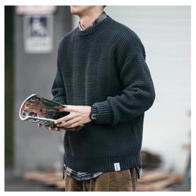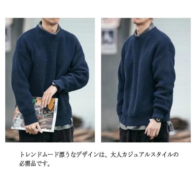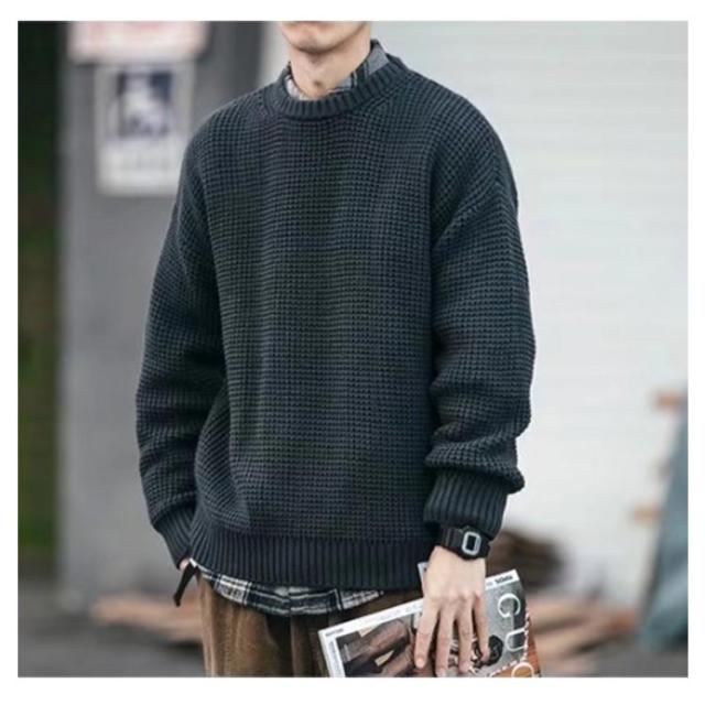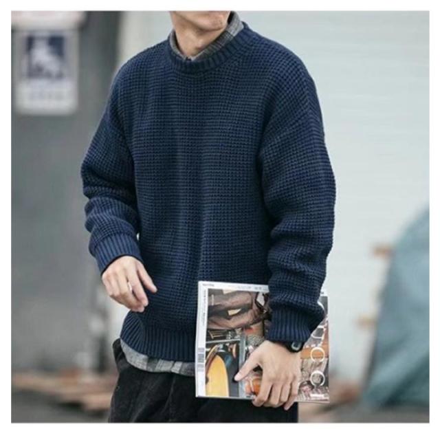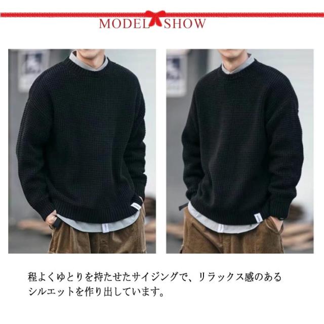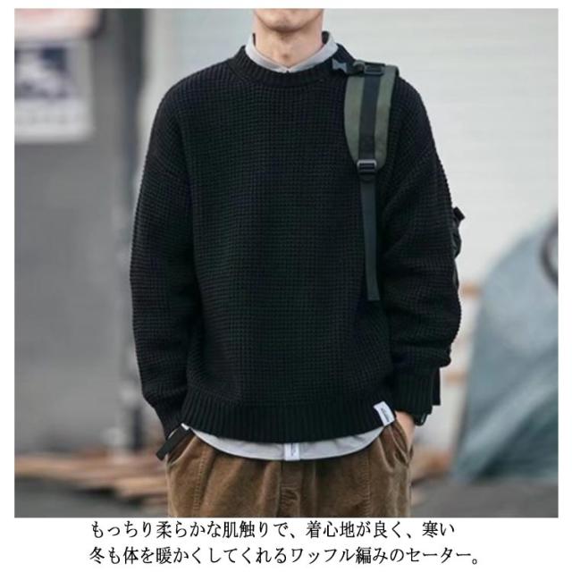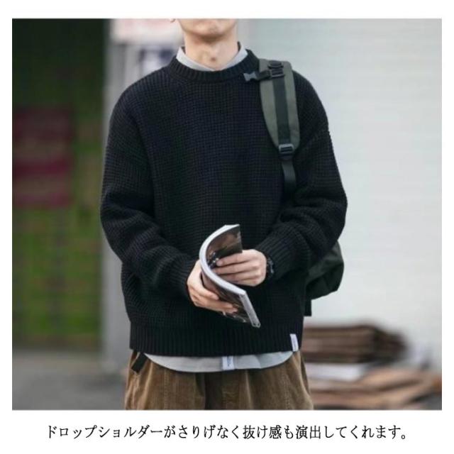 メンズ 韓国風 セーター ワッフル編み プルオーバー クルーネック 長袖 ニットセーター ニット トップス ニット ドロップショルダー 厚手 メンズファッション 無地 シンプル 着回し ゆったり ルーズ カジュアル インナー 通勤 通学 秋冬 ニット