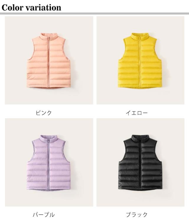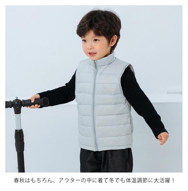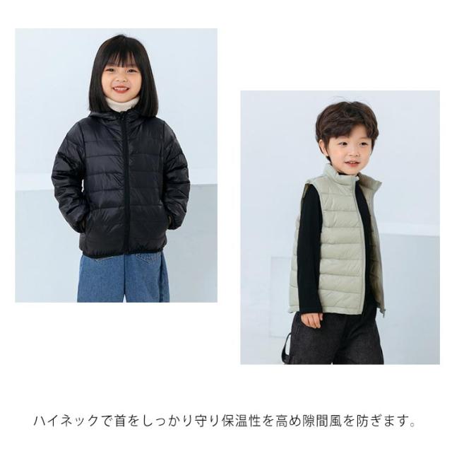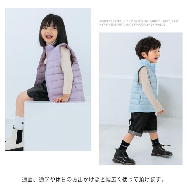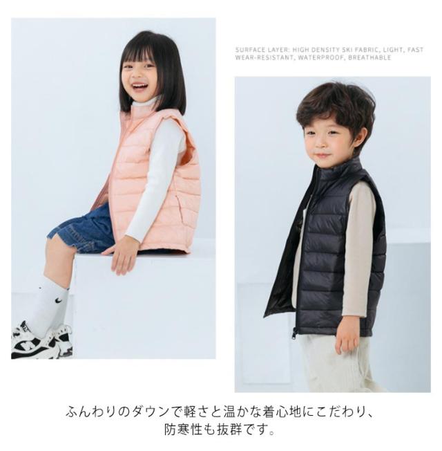 ノースリーブ ダウンベスト 羽織り トップス 秋冬 ジレ ジュニア 男の子 軽量 女の子 無地 防寒 可愛い お洒落 あったか お出かけ トップス 110cm 120cm 130cm 140cm 150cm 暖かい