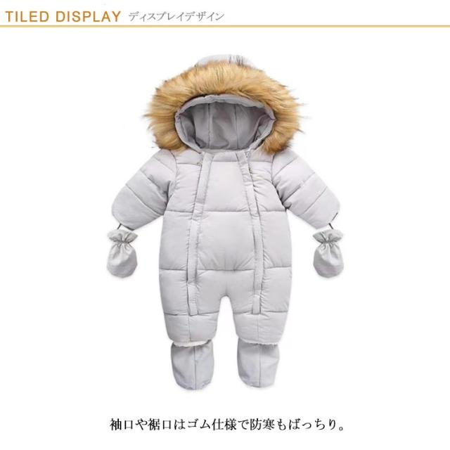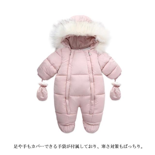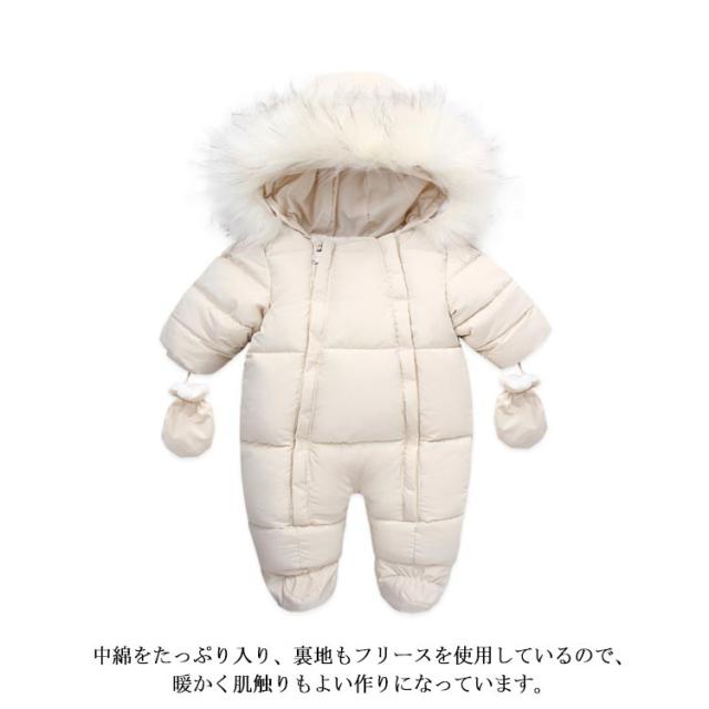 新生児 ベビー 防水 ジャンプスーツ ロンパース ボアフリース パーカー キッズ 裏起毛 カバーオール つなぎ 雪遊び 赤ちゃん 女の子 80 フード付き 防寒 暖かい フェイクファー スノーウェア 足カバー 手袋付き 出産祝い 百日祝い 66 73 男の子
