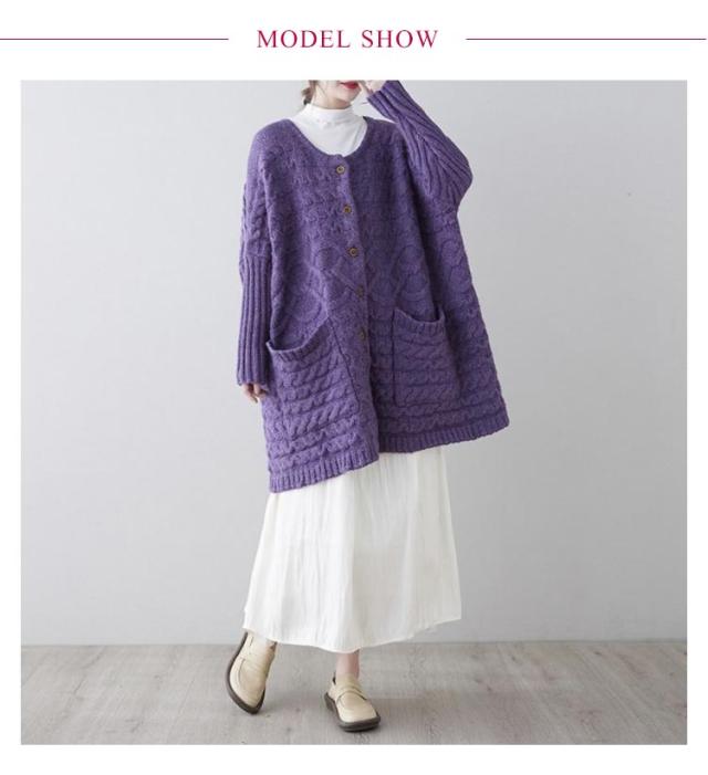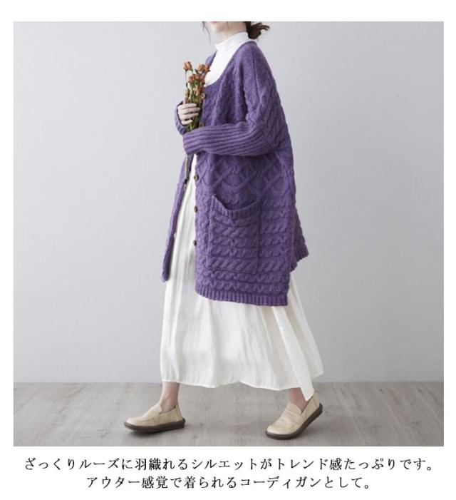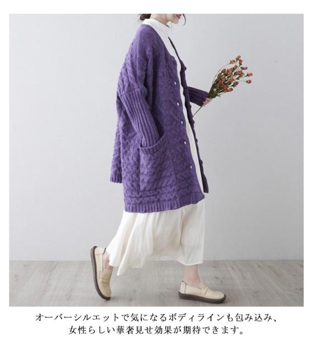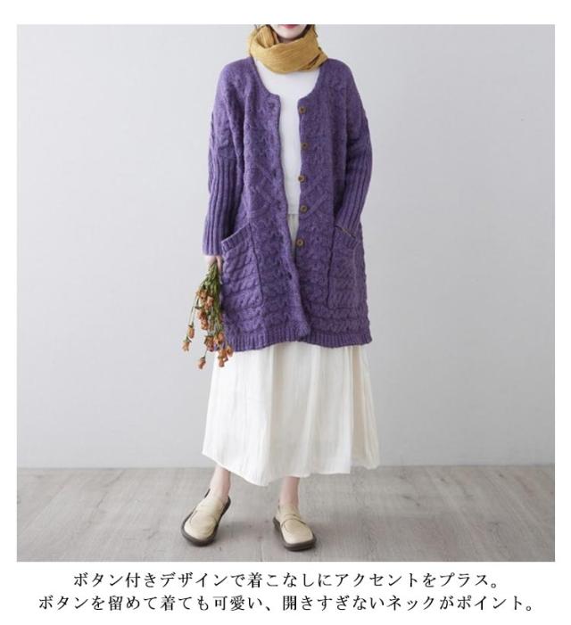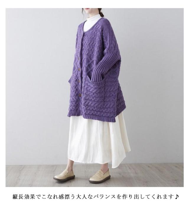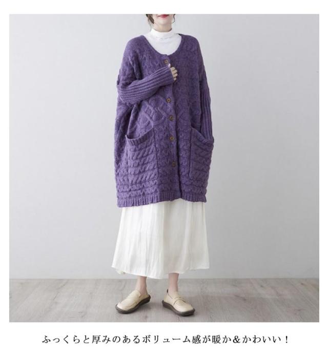 | 羽織るだけで女っぽさも打ち出せるロング丈カーディガンが登場! 縦長効果でこなれ感漂う大人なバランスを作り出してくれます♪ ふっくらと厚みのあるボリューム感が暖か&かわいい! ボタン付きデザインで着こなしにアクセントをプラス。ボタンを留めて着ても可愛い、開きすぎないネックがポイント。 オーバーシルエットで気になるボディラインも包み込み、女性らしい華奢見せ効果が期待できます。 ざっくりルーズに羽織れるシルエットがトレンド感たっぷりです。アウター感覚で着られるコーディガンとして。 季節の変わり目に大活躍!一枚は欲しいニットカーディガン。 | |