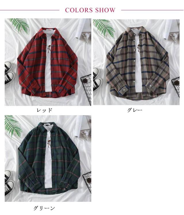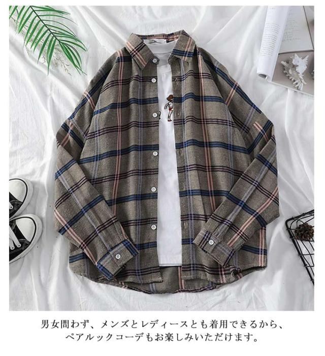 チェック柄 長袖シャツ レディース チェックシャツ 秋冬 カラフル カジュアルシャツ アメカジ メンズ 長袖 トップス 送料無料 男女兼用 ペアルック 学生 通勤 お出かけ シャツ