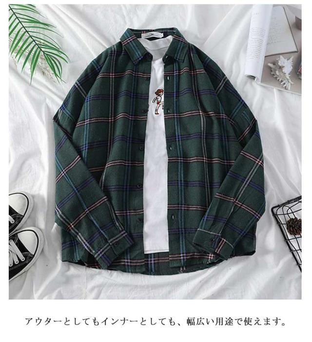 | コーデのアクセントになるチェックシャツ。 シンプルデザインなので、どんなアイテムにもマッチできる万能シャツです。 男女問わず、メンズとレディースとも着用できるから、ペアルックコーデもお楽しみいただけます。 アウターとしてもインナーとしても、幅広い用途で使えます。 しっかりした上質な生地、長持ちしそう◎ | |
