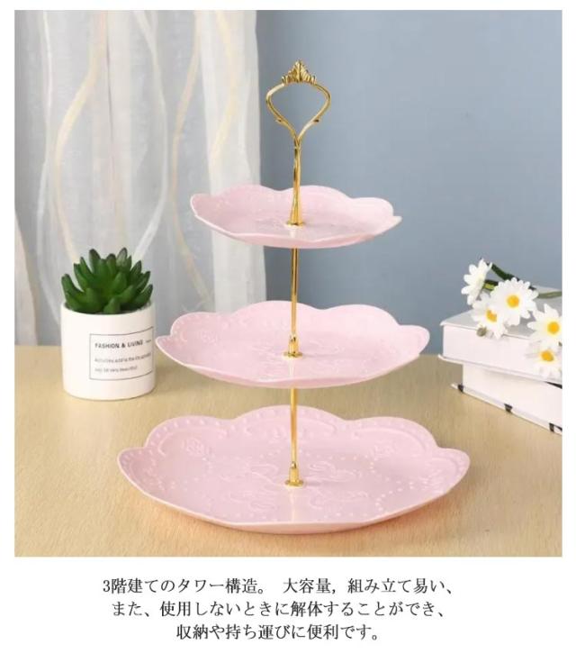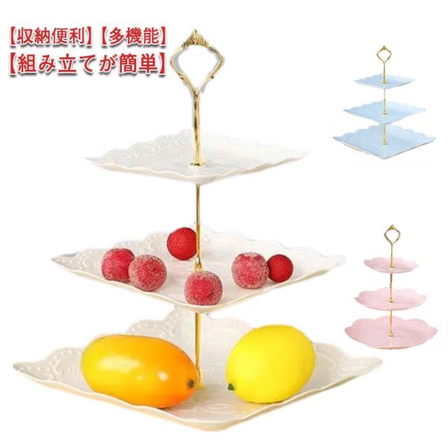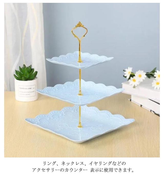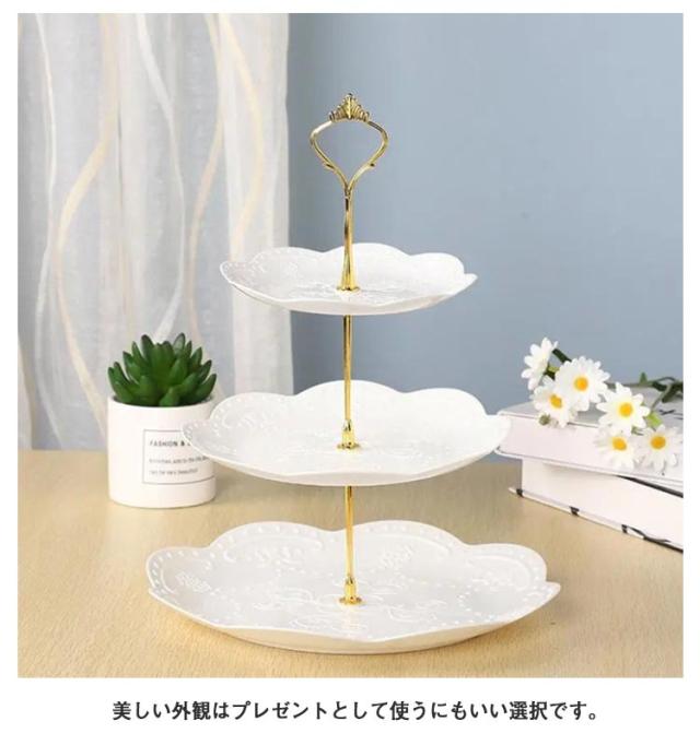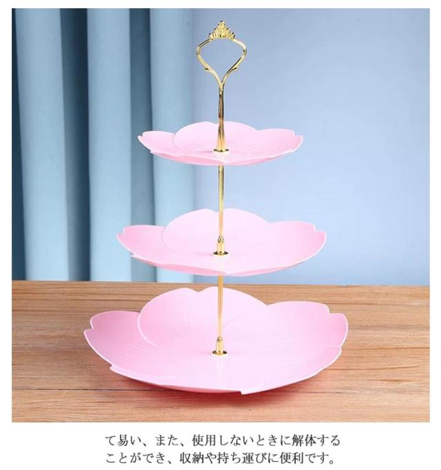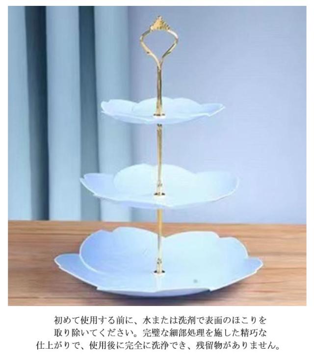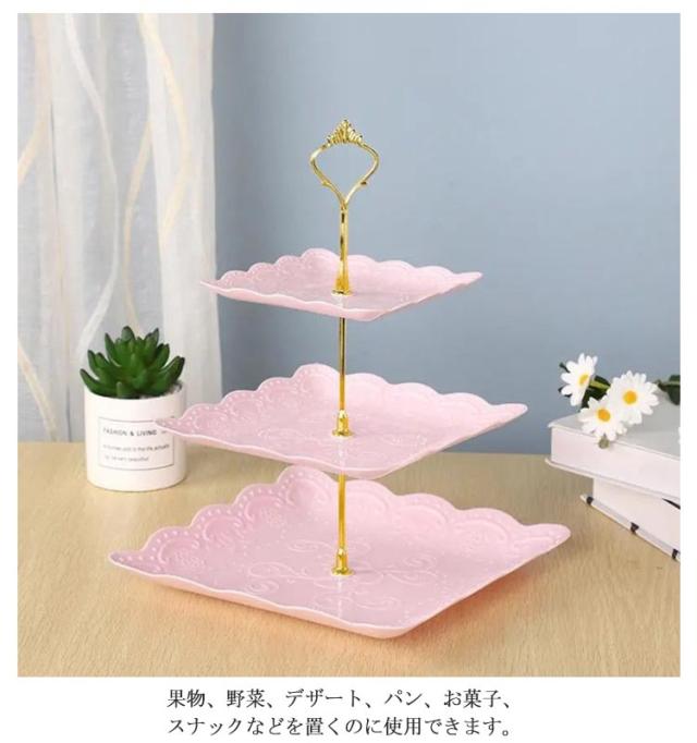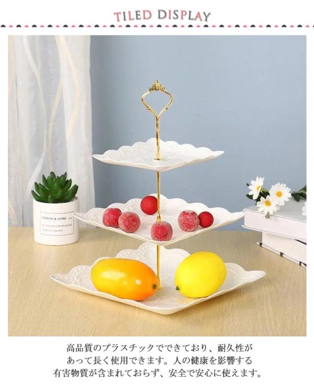 3段ケーキ皿 プラスチック製 三段ケーキスタンド 食器 プレート 軽い 北欧 ケーキスタンド タワー型 フルーツ 手入れ簡単 結婚式誕生日会 お茶会 贈り物 アフタヌーンティースタンド