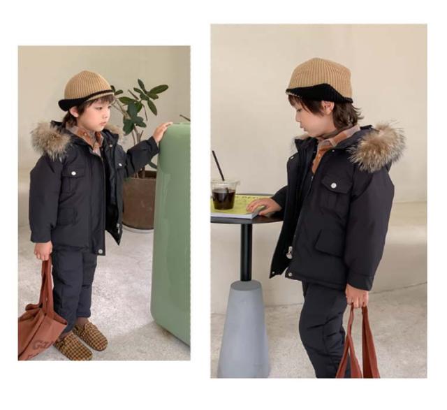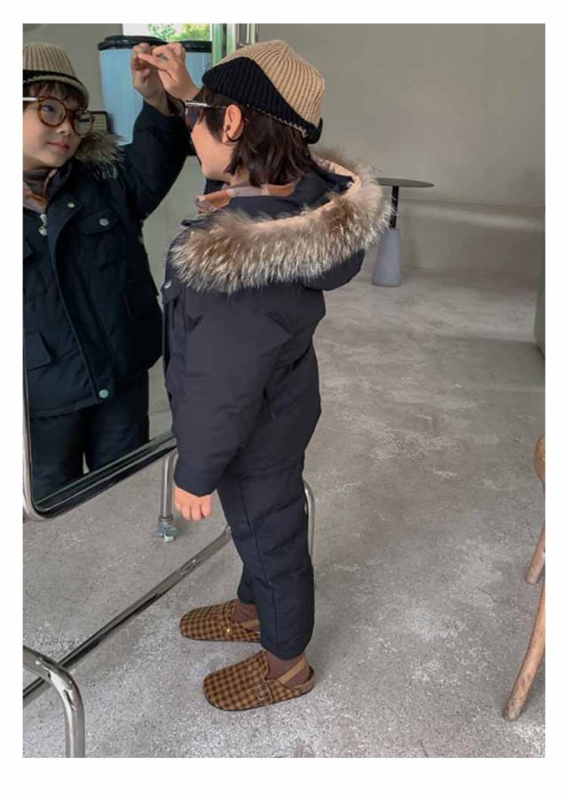 | 子供用防寒着【ダウンサロペット&ダウンジャケットの2点セット!】 【前開きのダウンサロペット】前にファスナーが付いて、肩にもボタンで固定しますので、着替えや着脱やすいです。また、ベルトは2階段サイズ調節可能です。 【ダウンジャケット】軽くて暖かいダウンジャケットはファー付きフードで高見えすること間違いなし◎ 表地は、目の詰まったポリエステル素材を使用しており、雨や雪などで濡れた際にも乾きやすくなっているのが特徴的です。 詰物にはダウンを使用しているので機能的で保温性に優れた商品になっています。 カジュアルにもきれいめにも着こなせるシンプルな万能デザインシンプルながらもおしゃれ感抜群 セットでも単品でもご着用頂けるので、着回し力抜群のアイテムです。 | |