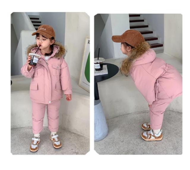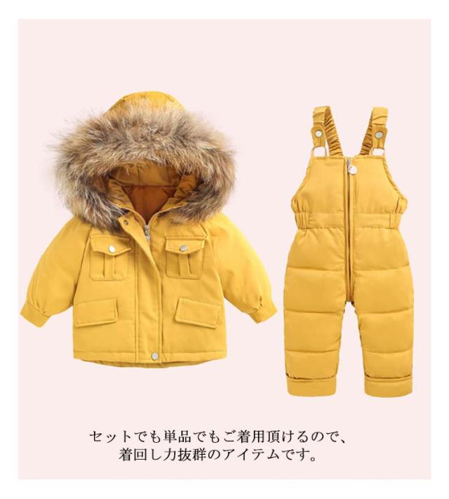 ダウンパンツ 防寒 ダウンコート 子供服 2点セット フード ファー ダウン 110cm 長ズボン キッズアウター ベビー キッズ 付き ダウンジャケット 保温 お出かけ 秋冬 雪遊び サロペット 女の子 男の子 90cm 100cm アウトドア