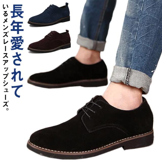 レースアップシューズ メンズ カジュアルシューズ フラットシューズ ブランド オックスフォードシューズ 秋冬 スニーカー 革靴 短靴 おしゃれ ブルー コーヒー ブラック 秋 スエード