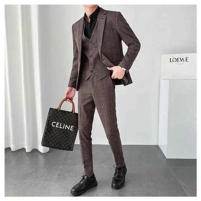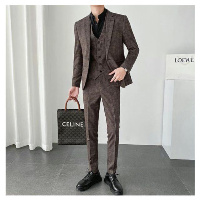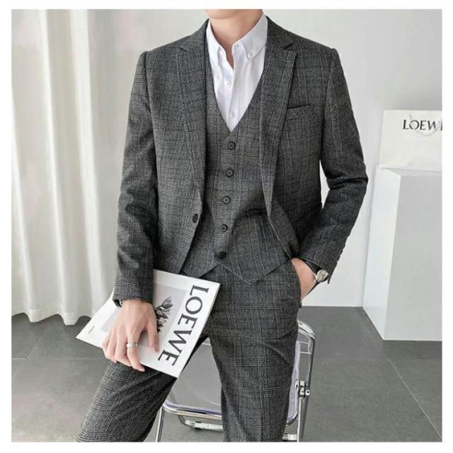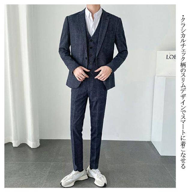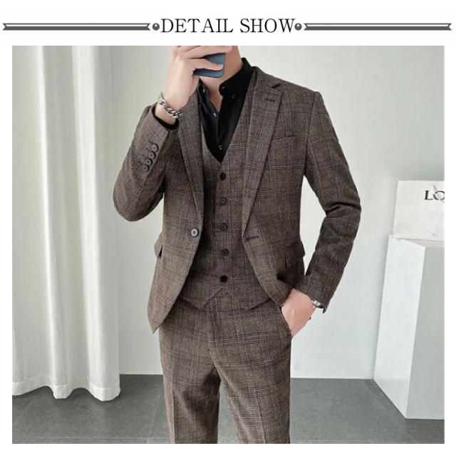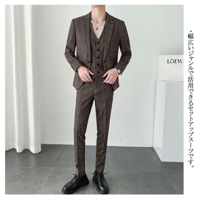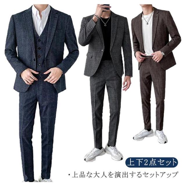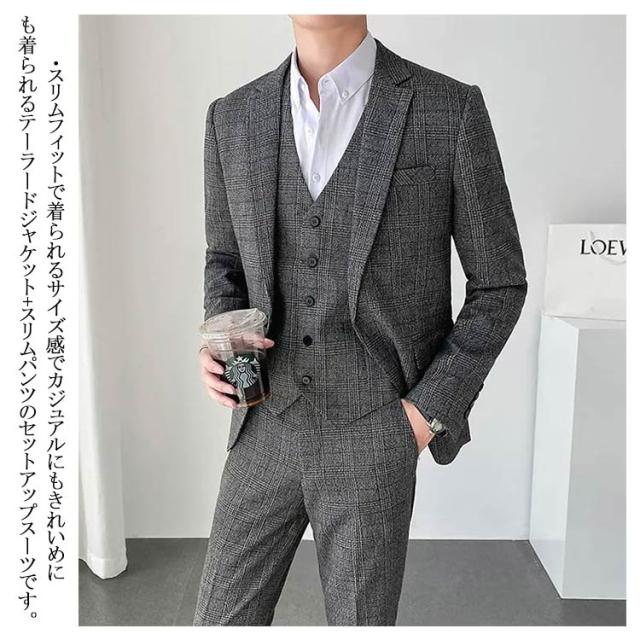 パーティースーツ 入学式 スーツ 紳士服 グレンチェック柄 テーラードジャケット+スリムパンツ セットアップ 1つボタン タイト グレンチェック柄 洗える おしゃれ スリムスーツ 成人式 上下セット 卒業式 結婚式 二次会 メンズ