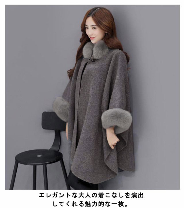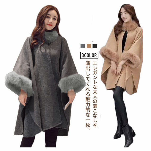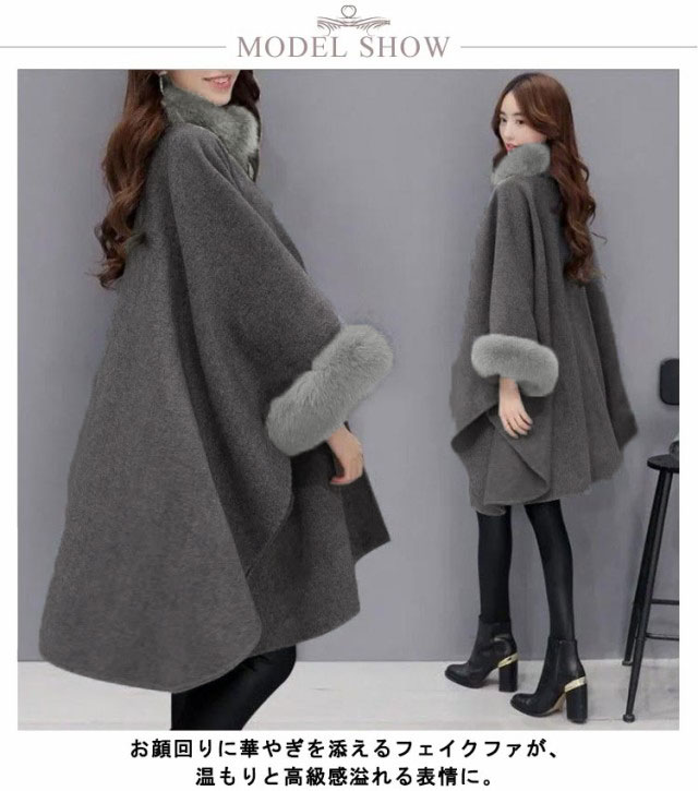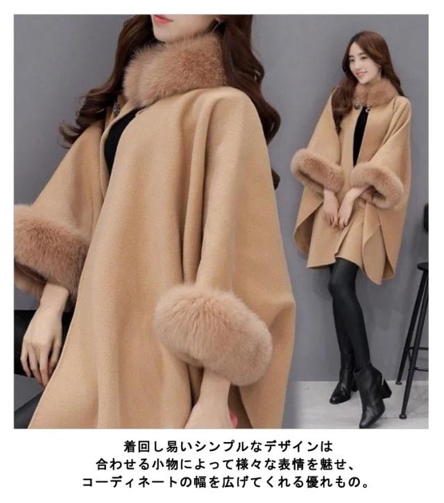 ファー付き ポンチョコート 送料無料 冬 ケープ マント レディース 毛皮コート 秋冬 ファーコート 毛皮コート 秋冬 ポンチョ アウター 長袖 大きいサイズ 体型カバー コート ゆったり ファー 大人 きれいめ おしゃれ かわいい 韓国風 パーティ 20代 ファーポンチョ