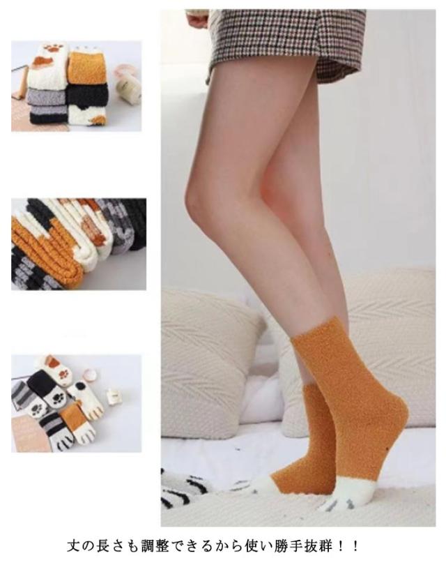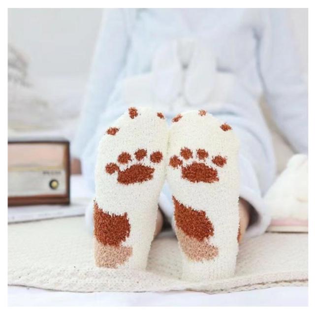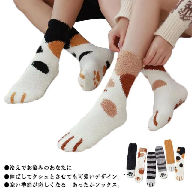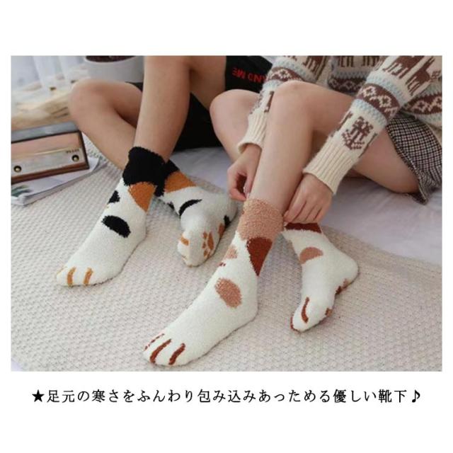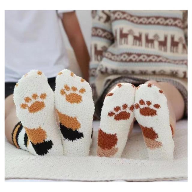 足元あったか 猫足 ふわふわ 靴下 肉球柄 冷え対策 暖かい 2足セット 冬 やわらかくて優しい肌触り ふわふわ もこもこ ルームソックス 厚手 防寒 部屋 室内ソックス ホームソックス マシュマロタッチ やわらかくて優しい肌触り レディース