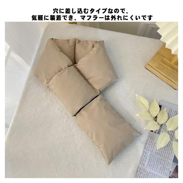 | ダウンにも劣らない暖かさの中綿入りマフラー。 穴に差し込むタイプなので、気軽に装着でき、マフラーは外れにくいです。 暖かな空気があなたを包み、首元を優しく包んでくれ暖かい! アウトドア、通勤通学、スポーツシーンにも使えます。 シンプルなデザインでコーディネートに合わせやすい。 | |