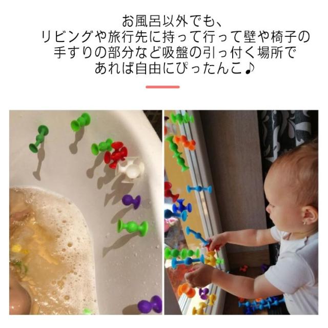 | 柔らかい素材で舐めても安心の塗料を使用♪ 場所を選ばず遊べる新感覚吸盤おもちゃ。 お風呂場でも遊べるので、何個かお風呂場にもっていきお風呂も楽しくなっちゃう? お風呂以外でも、リビングや旅行先に持って行って壁や椅子の手すりの部分など吸盤の引っ付く場所であれば自由にぴったんこ♪ 色んな形・組み合わせは自由!! お子様の自由な発想・思想を育てちゃおう☆ | |