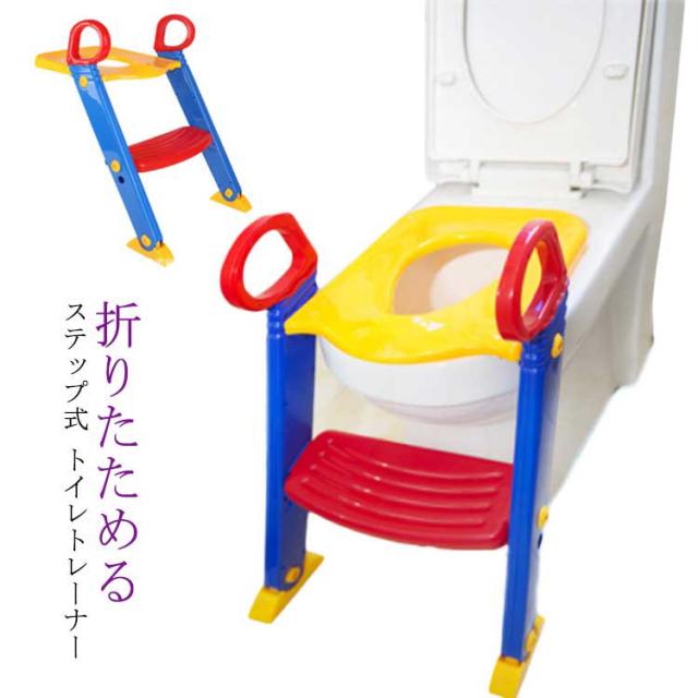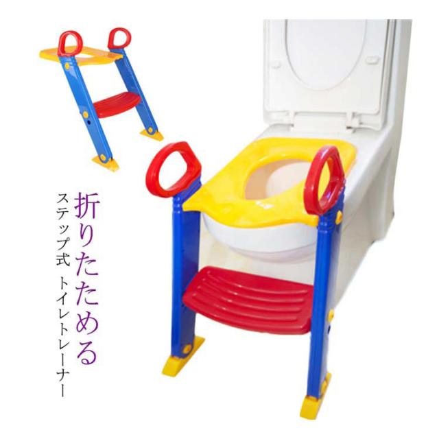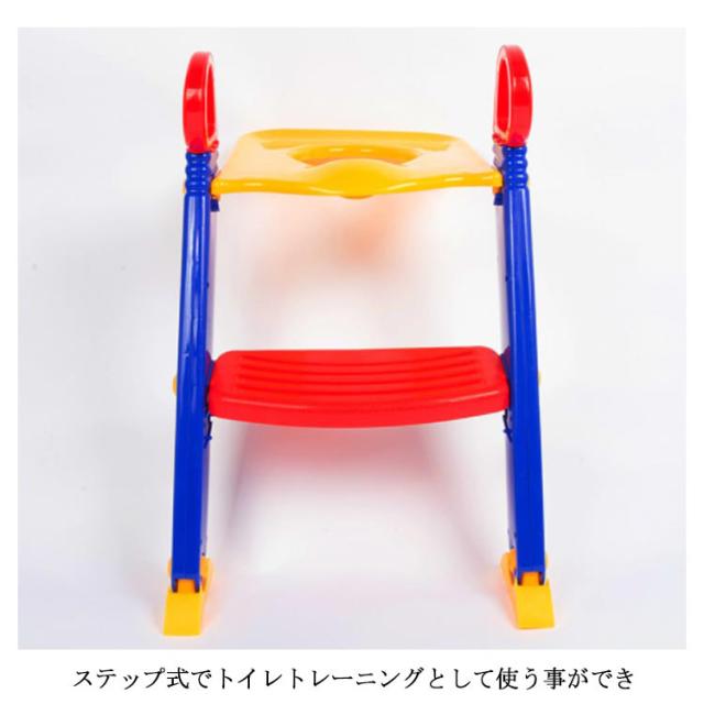 | 折りたためる ステップ式 トイレトレーナー 小さなお子様のトイレの助けに 小さなお子様のトイレを手助けするトイレ用はしごです。 ステップ式でトイレトレーニングとして使う事ができ、 床に足がつかない小さなお子様でも、自分で登って使用する事ができます。 お子様の成長に合わせてステップを外して補助便座補助便座のみでもご使用できます。 大人用洋式トイレの様に、両足をそろえて座らせる事ができるので、スムーズに大人用トイレへの移行ができます。 元気いっぱいのカラフルなカラーでトイレトレーニングが楽しくできます♪ トイレはしごを使用しない時は折りたたんで立てかける事ができ収納も簡単です。 | |