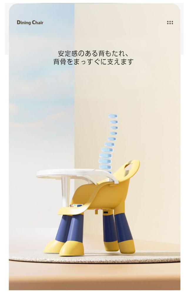 | 離乳食時から5歳まで使えるキッズチェア。 着脱式の専用トレイがついているので、食器や絵本を置くことができます。 動くと音が出るから、赤ちゃんの興味を起こし、楽しく座れれることもできるから嬉しいポイント。 低反発のクッション付きで、座り心地も◎ 安定感のある背もたれ、背骨をまっすぐに支えます。 全体に丸みに帯びたデザイン、赤ちゃんを傷付くことなく安心。 日常生活の習慣付けに役立アイテムです。 | |