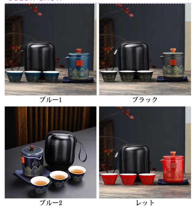 | 中国茶を楽しむための便利な茶器セットです。 茶壺(急須)、茶杯、茶筒、茶盤までセットになっているので、これひとつですぐに本格的なお茶を楽しむことができます。 専用の収納バッグに収められているので場所もとらず、持ち運びにも便利です。 くつろぎの時間やちょっとしたお持てなしの茶会にも。ひとつあると便利な茶器セットです。 ※茶壺は非常に熱くなります。火傷にはくれぐれもご注意ください。 セット内容:写真通り | |