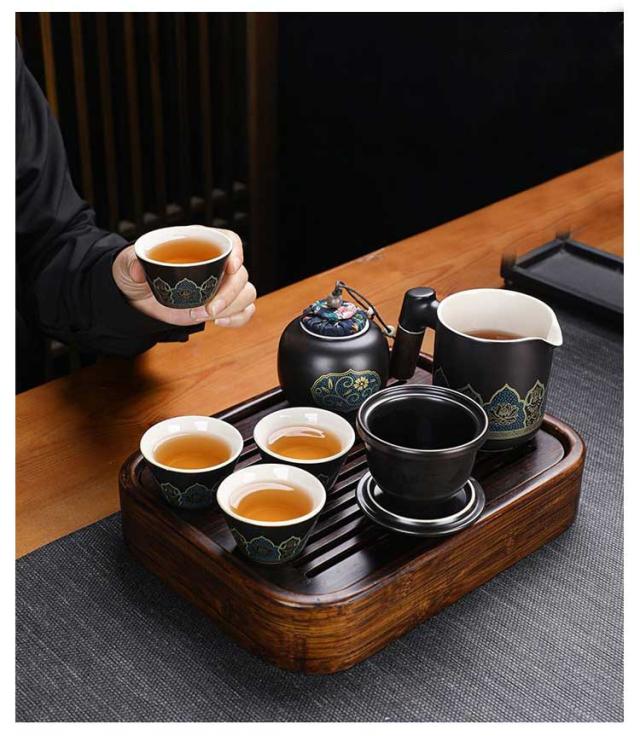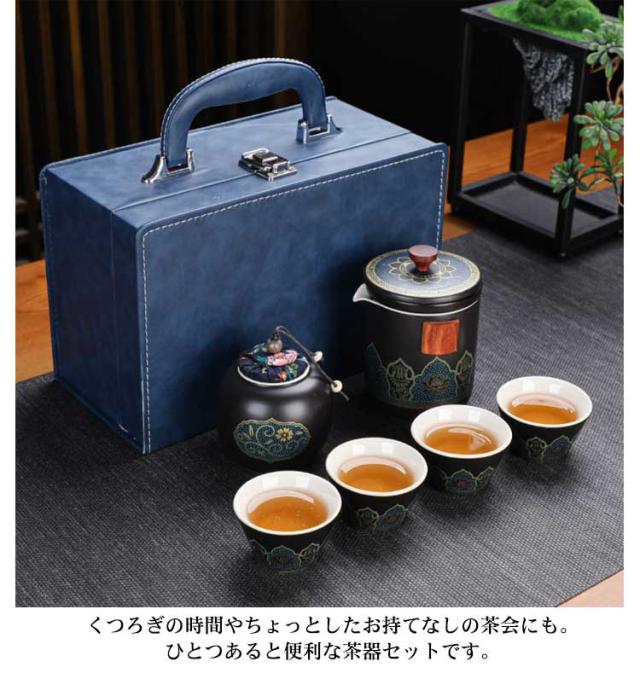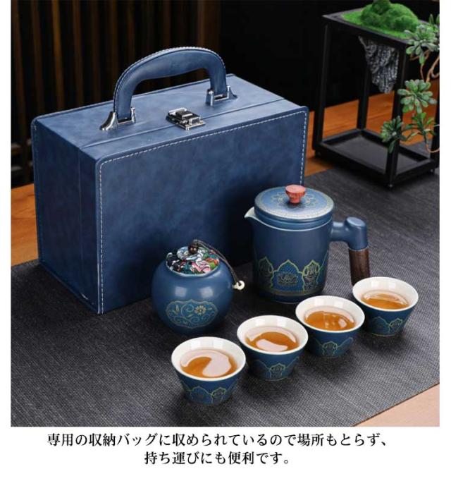| 中国茶を楽しむための便利な茶器セットです。 茶壺(急須)、茶杯、茶筒、茶盤までセットになっているので、これひとつですぐに本格的なお茶を楽しむことができます。 専用の収納バッグに収められているので場所もとらず、持ち運びにも便利です。 くつろぎの時間やちょっとしたお持てなしの茶会にも。ひとつあると便利な茶器セットです。 ※茶壺は非常に熱くなります。火傷にはくれぐれもご注意ください。 セット内容:写真通り | |