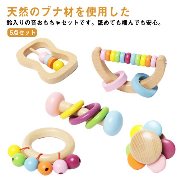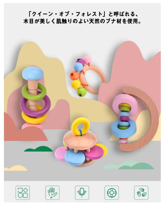 | 天然のブナ材を使用した鈴入りの音おもちゃセットです。舐めても噛んでも安心。【5点セット】 低月齢からおすすめできるおもちゃ。 木のぬくもりを感じられるナチュラルなデザイン。 「クイーン・オブ・フォレスト」と呼ばれる、木目が美しく肌触りのよい天然のブナ材を使用。 赤ちゃんの小さな手でも握りやすい仕様。 | |