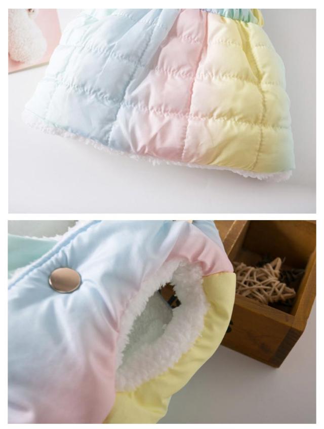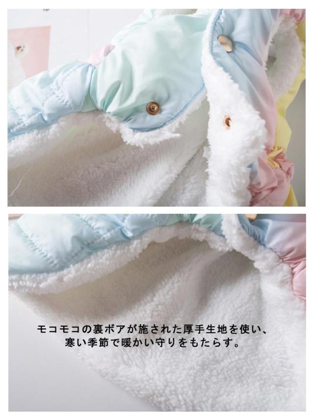 | モコモコの裏ボアが施された厚手生地を使い、寒い季節で暖かい守りをもたらす。 機能性だけではなくファッション性にも重視 キルティングのデザインがさりげなく癒し系のムードを漂わる 人の洋服にも劣らないオシャレ感で注目を集めるアイテム | |