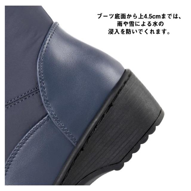 | 冬の寒さをシャットアウト! 「中綿入り」 スノーブーツ登場 軽くて暖かい「中綿入り」の生地と 内側のボア素材が足元をしっかりと包み込み 冬の厳しい寒さから守ってくれます。 アッパー部分は撥水加工がされているので急な雨や雪にも安心して履いただけます。 ブーツ底面から上4.5cmまでは、雨や雪による水の浸入を防いでくれます。 履き口は調整可能なので冬の冷たい外気などから足首まわりを守ってくれます。 | |