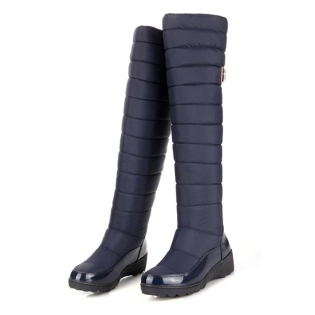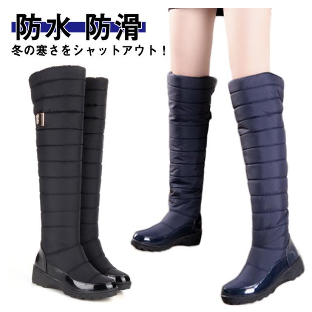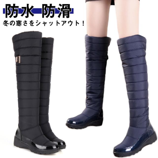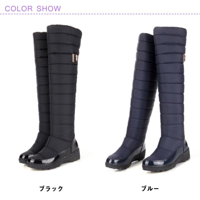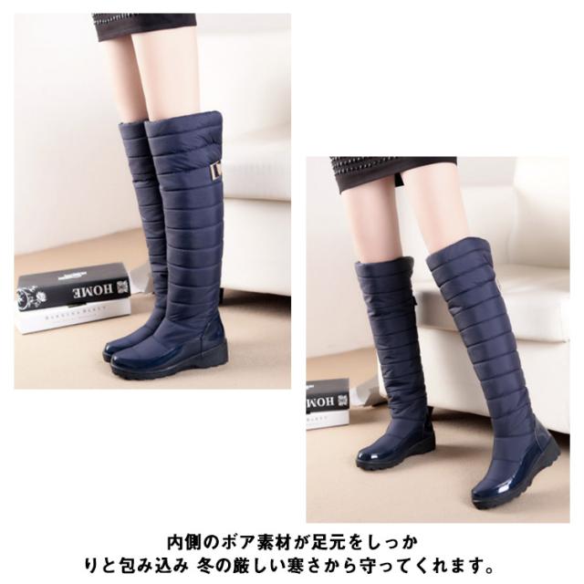 スノーロングブーツ ダウンブーツ ロングブーツ スノーシューズ 滑らない ブーツ 防寒靴 ロング 防水 裏起毛 中綿入り ブルー レディース 防滑 撥水 長靴 ウインターブーツ 大きいサイズ 雪