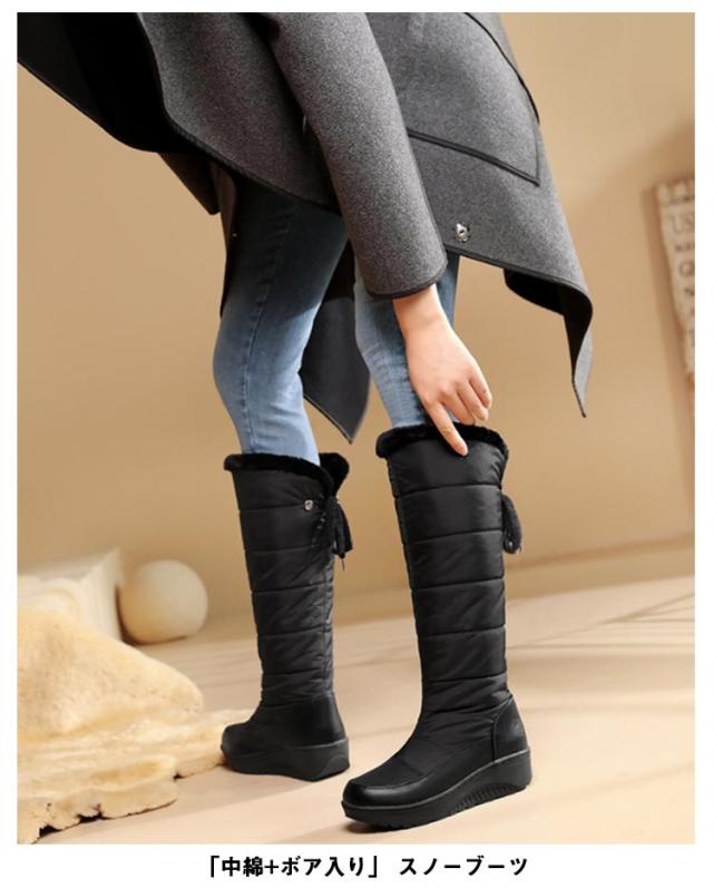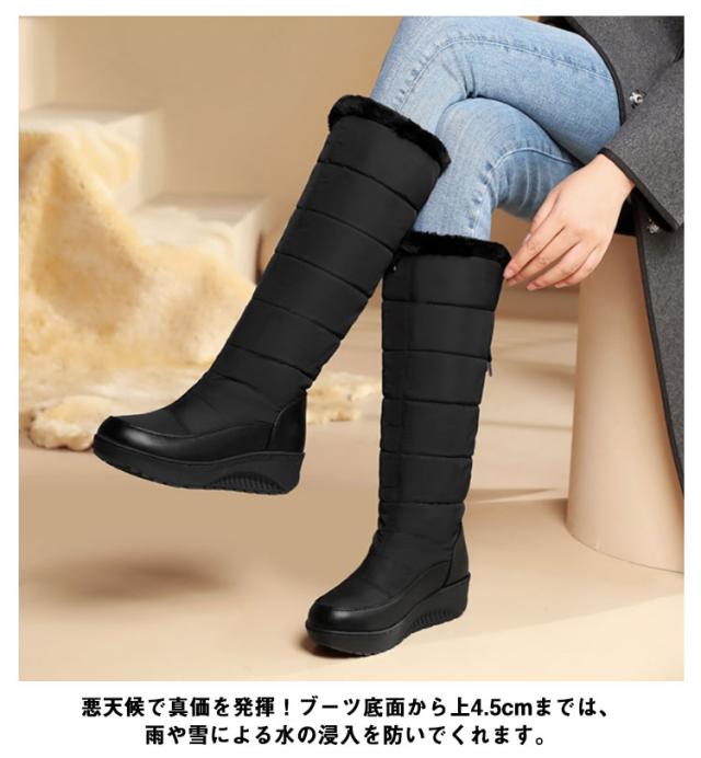 ロング スキーブーツ スノーブーツ ブラック 裏起毛 防滴防滑防寒 雪靴 レディース ロングブーツ キルティング スノーデイ 防水 防滑 保温 カジュアル シューズ