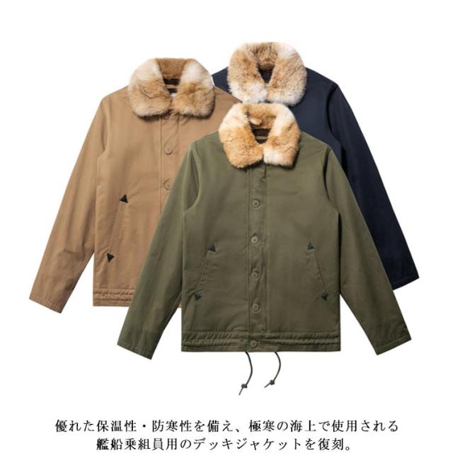 ウール混 レディース 新品 米軍 アウター メンズ ウール デッキジャケット ラビットファー N-1デッキジャケット 襟元 ミリタリージャケット 秋 綿 N-1 秋 N1 冬 防寒 アメリカ軍 海軍 NAVY ネイビー ミリタリー