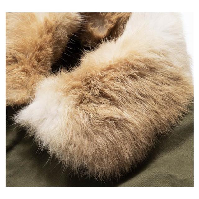 | 素材 | 表地:綿 裏地:ウール混紡 ファスナー:TALON 5# 襟:ラビットファー(フェイクファーではない) |