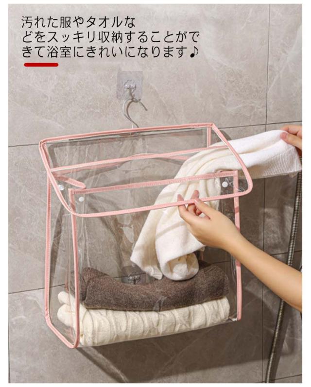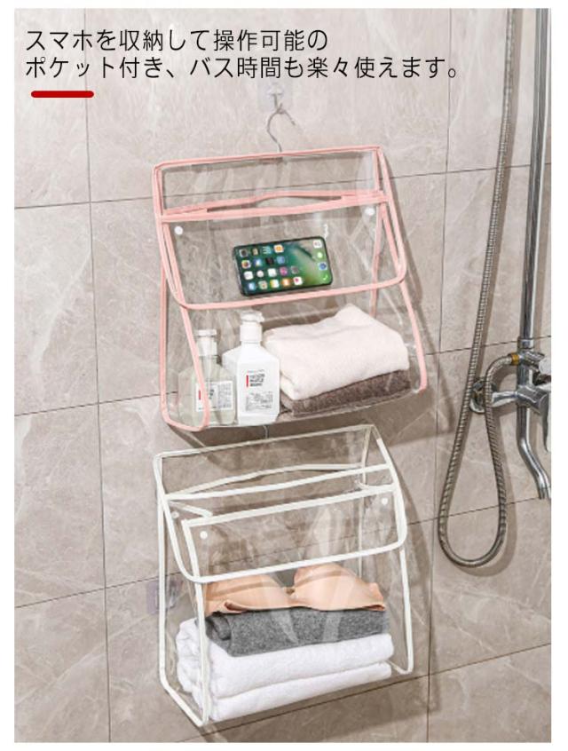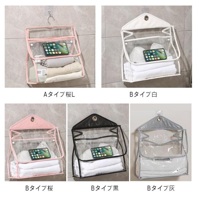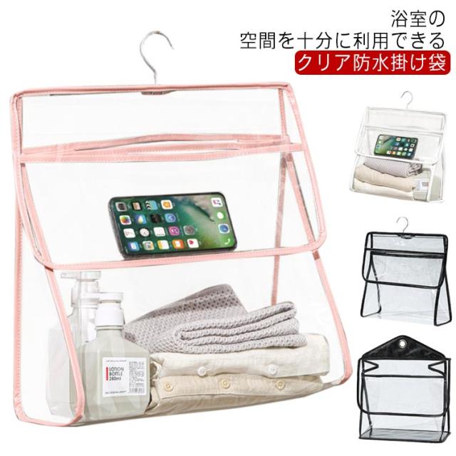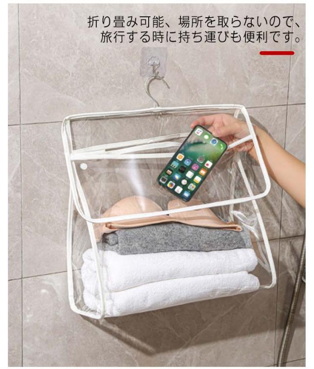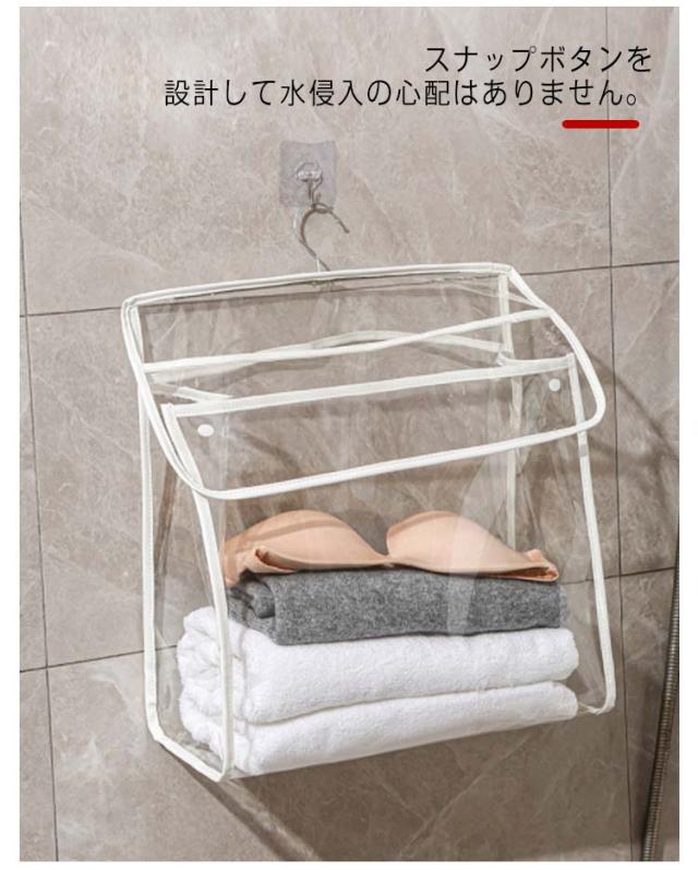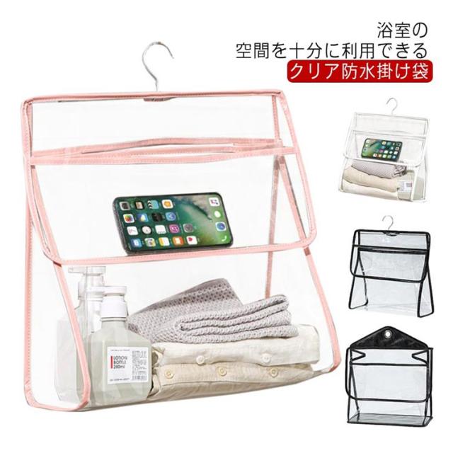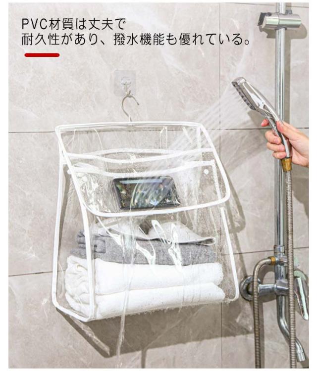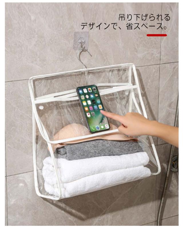 壁掛け クリア トイレ 浴室 透明可視 掛け袋 タオル入れ シャワー 衣類置き場 タオル収納 浴室用 タオルラック スマホ入れ お風呂 防湿気 浴室用防水掛け袋 旅行 防塵 防水掛け袋 出張 コンパクト 防水 防水 便利 収納ラック