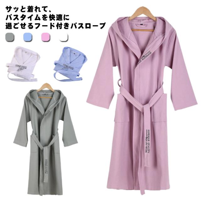 送料無料 メンズ レディース 男女兼用 綿 ガウン バスローブ 高級 バスタオル ふわふわ お揃い フード付き ロング丈 湯冷め防止 部屋着 ルームウェア シンプル かわいい お風呂上がり プール 温泉 ホテル仕様 贈り物 お揃い