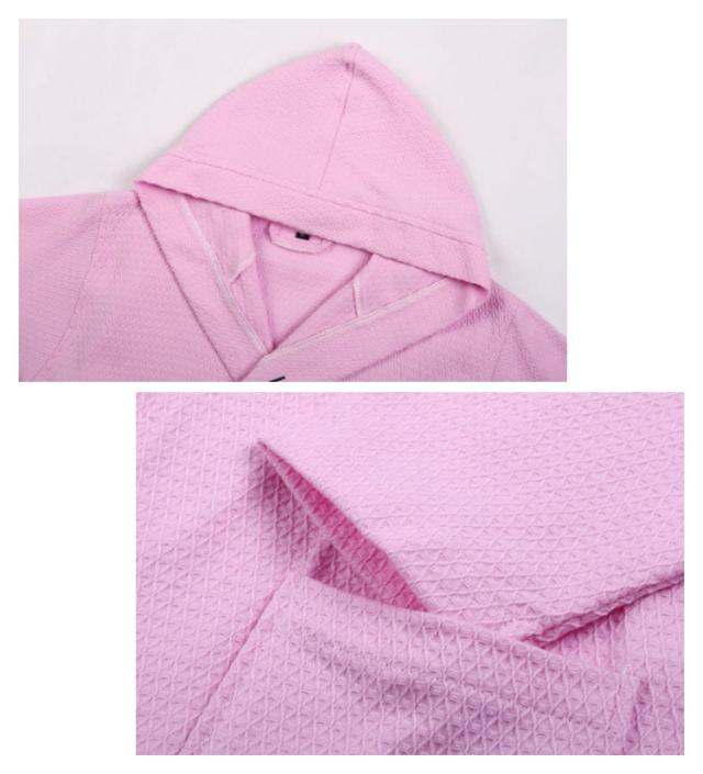 | サッと着れて、バスタイムを快適に過ごせるフード付きバスローブ。 吸水速乾性に優れ綿素材を使用、なめらかな肌触りのバスローブに仕上がりました。 フードでそのまま髪をかわかすことができ、これ一枚あればタオルいらずで過ごせます。 室内だけでなく、プールや海などサッと羽織れてアウトドアでも活躍します。 | |