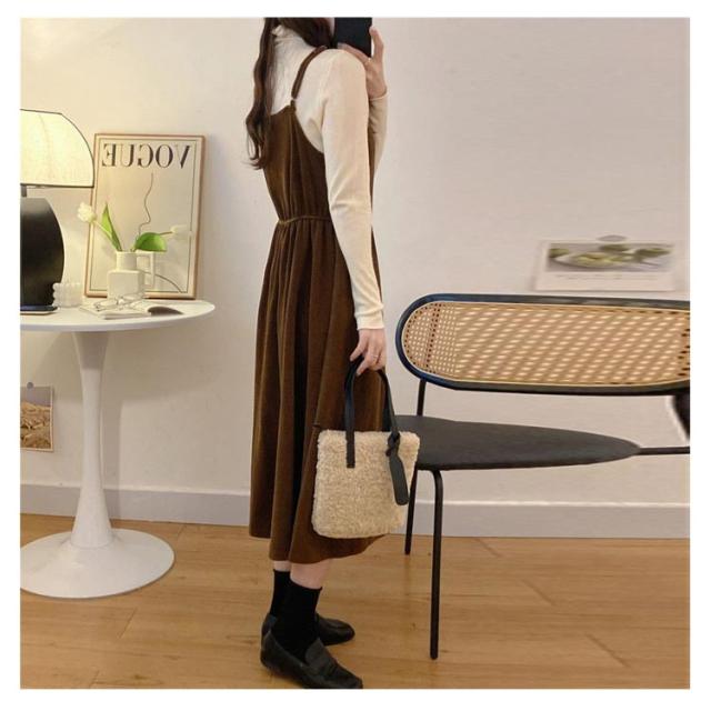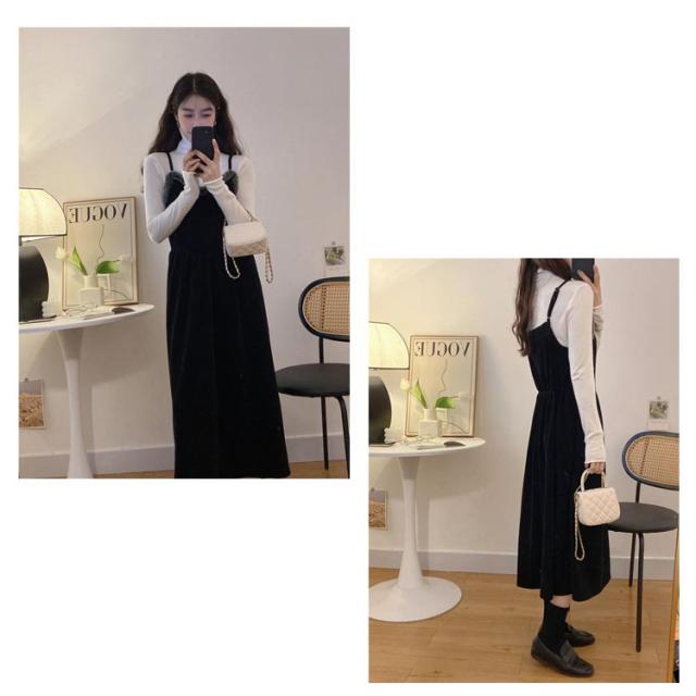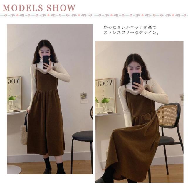 レイヤード レディース 秋冬 ワンピ ロングワンピース キャミソールドレス キャミワンピース Aライン S 着回し 重ね着 ワンピース カジュアル ゆったり おしゃれ ファー付き XL M L きれいめ