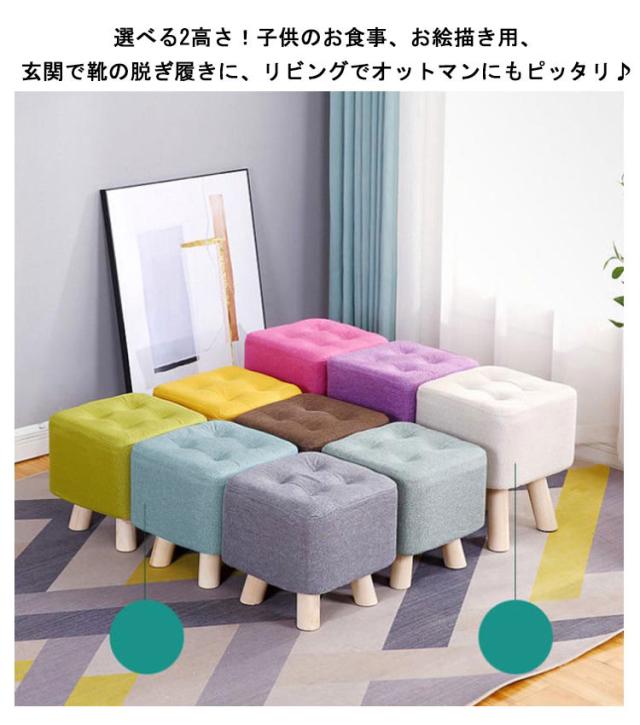 | 選べる2高さ!子供のお食事、お絵描き用、玄関で靴の脱ぎ履きに、リビングでオットマンにもピッタリ♪ 耐重100kgで大人もOKのオシャレなミニスツール。サラっとしたカバーは外して洗えます 木製脚と布張りの小さいイスは、ソファに座ってくつろぐ際のオットマン(足置きいす)がわりにもなる1人掛けロースツールです。 1人用のローチェアは、ローテーブル用やお絵かき用デスクのキッズスツールにもちょうどよい高さです。 省スペースで狭い空間でも邪魔にならない大きさだから家具をたくさん置けない一人暮らしのワンルームにも最適です。 | |