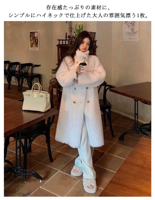 ふわふわ 長袖 ハイネック モコモコ ボアパーカー 防寒 ロングコート ジャケット カジュアル ファーコート アウター エコファー スリム 羽織 暖かい フェイクファー おしゃれ 韓国風 きれいめ 冬 レディース