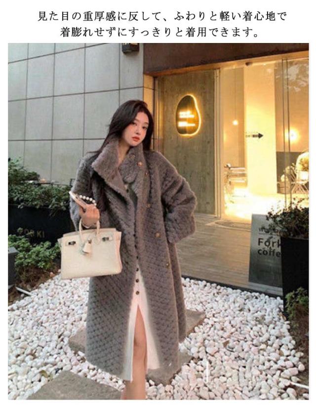 | ずっと触れていたくなるふんわりエコファーロングコート。 ふんわり柔らかな肌触りで、温もり感じるアイテムが着心地よい。 存在感たっぷりの素材に、シンプルにハイネックで仕上げた大人の雰囲気漂う1枚。 見た目の重厚感に反して、ふわりと軽い着心地で着膨れせずにすっきりと着用できます。 様々な装いにバサッと羽織っていただくだけで、トレンド感あふれる着こなしが楽しめます。 女性らしい魅力と可愛さを演出でき、暖かさと防寒性も叶える大活躍の一枚です。 | |