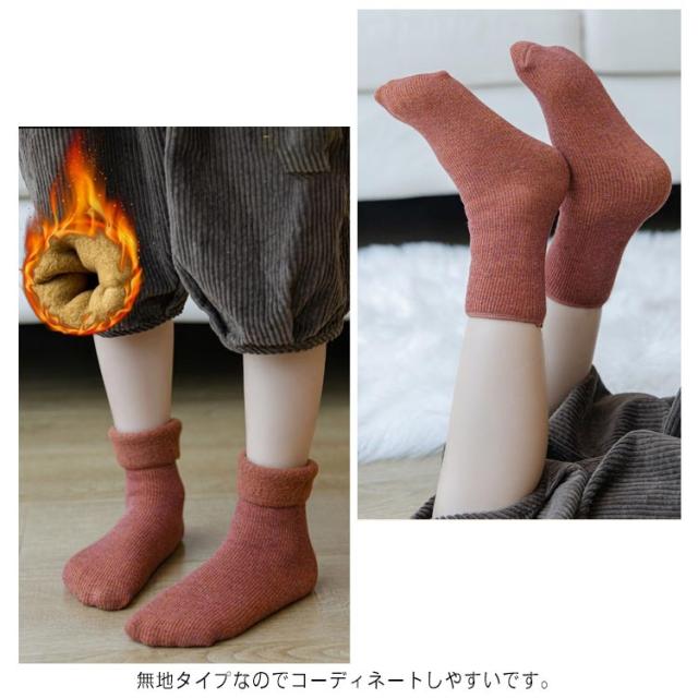 キッズ ナチュラル ソックス 子供用 4足セット 送料無料 アンクルソックス 厚手 秋冬 ジュニア 無地 女の子 男の子 くつ下 あったか ぬくぬく 靴下 男女兼用 防寒 裏起毛