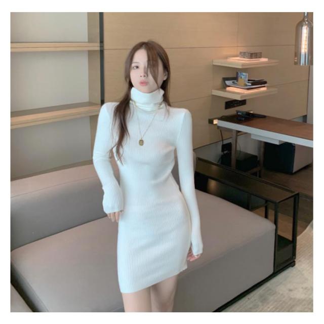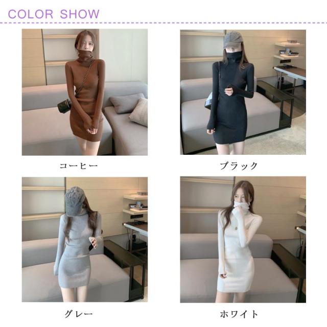 ニット ワンピース ハイネック 伸縮 春 ワンピ レディース タートルネック ニットワンピース 着痩せ 冬 秋 大人 エレガント タイト