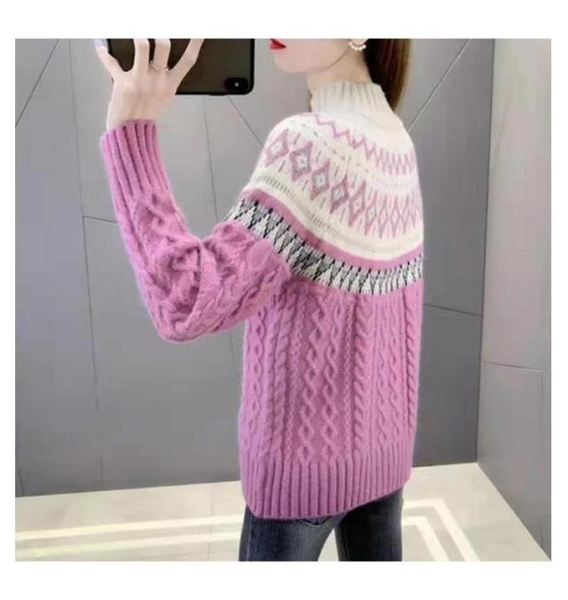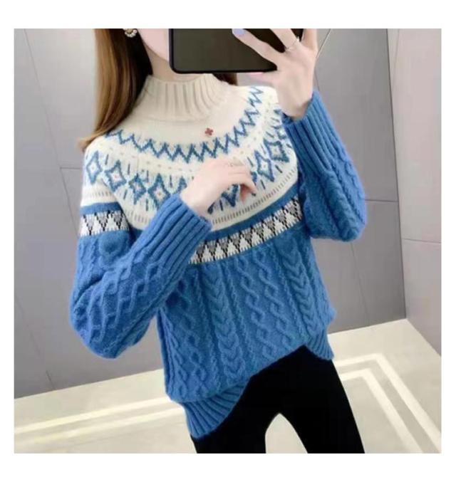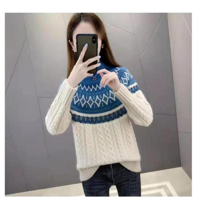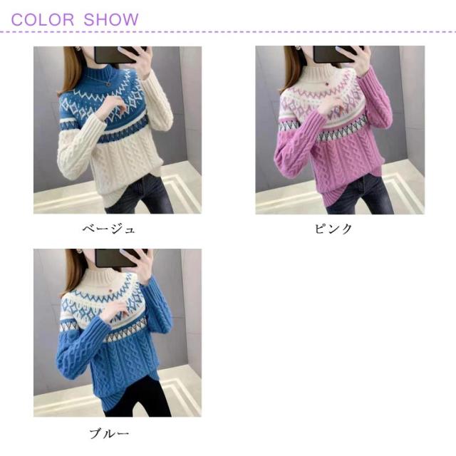 ノルディック柄プルオーバーニット レディース クルーネックセーター 切り替え ゆったり トップス 秋 冬 ノルディック柄 おしゃれ クルーネック 春 レディース 北欧 ナチュラル カジュアル 長袖