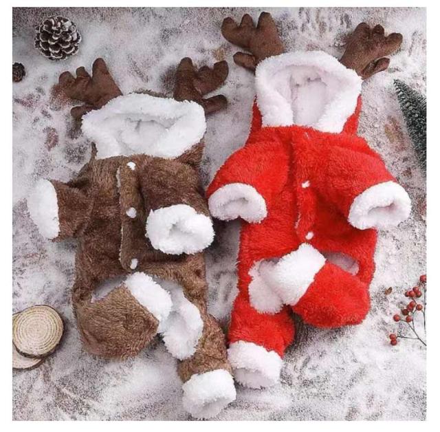 着ぐるみ 冬 中型犬 ロンパース 猫 コスプレ 小型犬 ドッグウェア ボア 大型犬 厚手 トナカイ 暖かい コスチューム もこもこ ふわふわ 犬服 仮装 変装 帽子付き 可愛い おもしろ 女の子 クリスマス