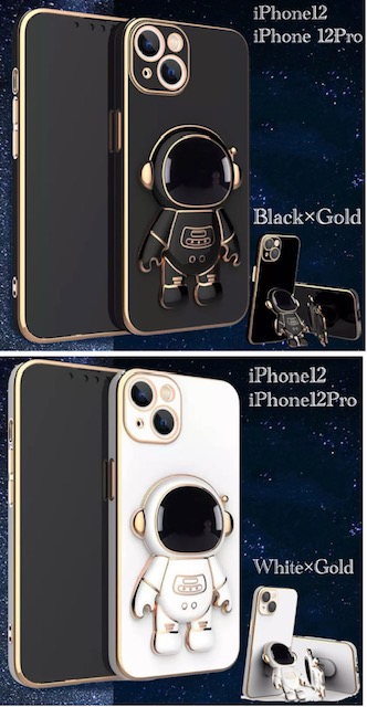 3 iPhone12 iPhone12Pro スマホケース シリコン スマホカバー メッキ加工 宇宙人 宇宙飛行士 シリコンケース TPU キズ防止 シンプル液晶フィルム ゴールド
